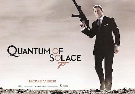 Bond (Daniel Craig) teams up with a Bolivian agent (Olga Kurylenko) to stop an evil plot involving water rights by an organization known as Quantum.
