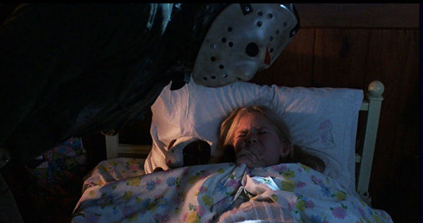 Scream is considered a masterpiece because of it’s self-referential dialogue, but this movie has a few self-referential moments. During the cemetery scene, in the beginning, the mortuary attendant looks directly into the camera after Jason has been revived and answers his own question, “Why’d they have to go and dig up Jason? I guess some people have a strange idea as to what’s entertainment.” Suggesting that Jason was brought back because we wanted him brought back. There is a young lady walking through the woods and she wants to get out of the woods, because she knows what happens to people who walk in the woods in horror movies. Also, during one of the most gripping scenes, Jason walks through a cabin filled with campers. He looks directly at a little girl who’s awake and she begins to pray. Jason leaves her alone, effectively showing us that Jason is an avenging spirit that is going after the sinners, not kids who say their prayers.