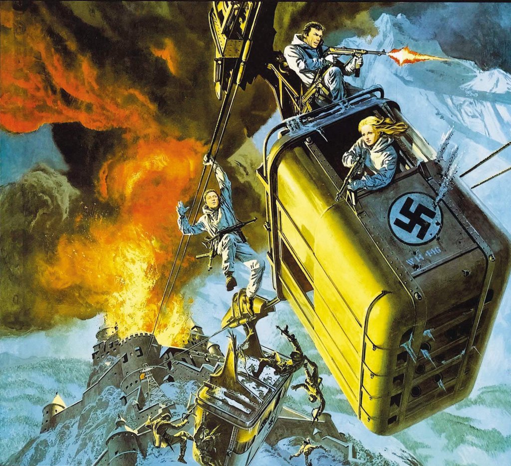 The plot is really quite audacious, if you think about it. A troop of seven supposedly unremarkable soldiers, parachute into an occupied portion of the Austrian Alps dressed as German soldiers. Their mission is to rescue an Allied General that is the architect of D-Day. If he talks, the invasion will have to be delayed a full year. His plane crashed on the way to organizing the European contingent. He has been taken to the Gestapo headquarters housed in an impregnable castle on an inaccessible mountain top. The only way to reach the castle is via aerial gondola.