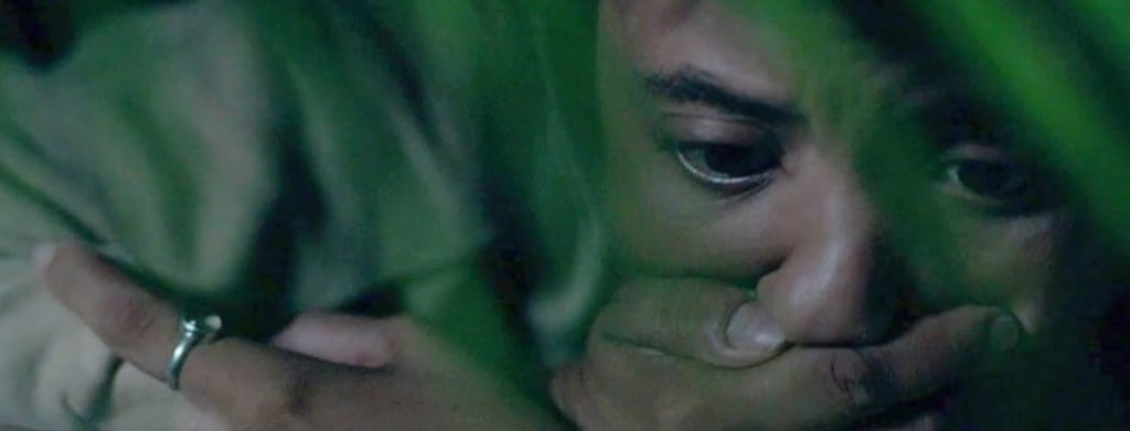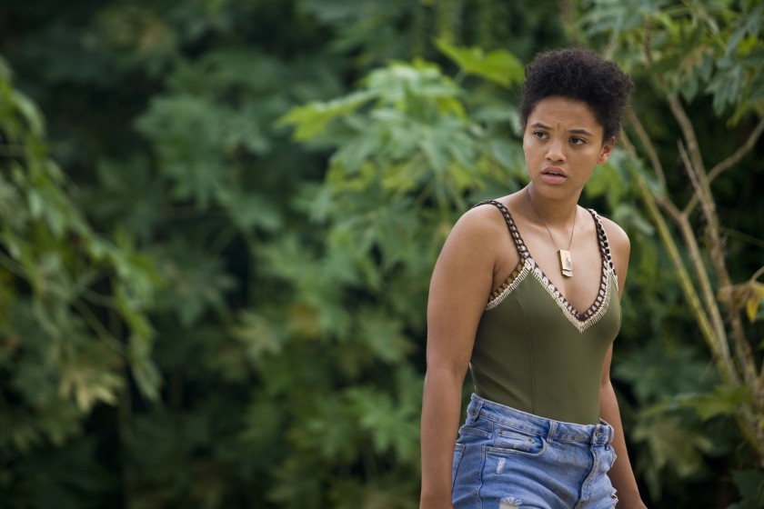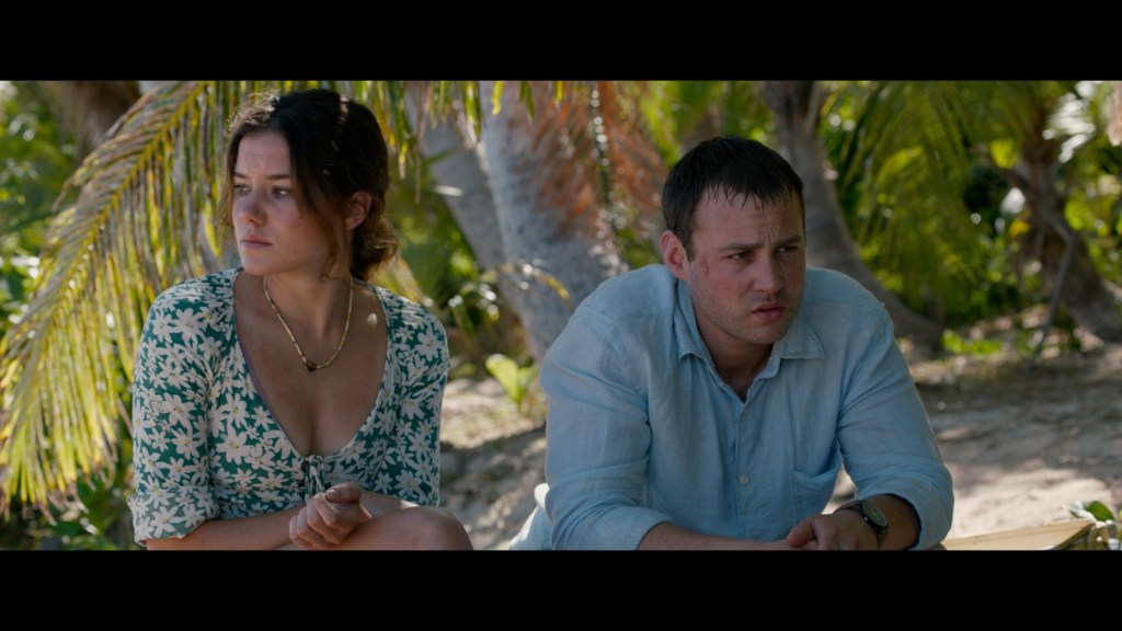 The following day, while standing on the shore, she sees a raft out on the water that contains her boyfriend, Lucas, and another friend, Mia. They are sunburned and dehydrated. Fortunately for them, Jenn provides them with food and sustenance. All the while, she communicates that she wants to get off the island. There was a family there that died, she explains. When they don’t take her seriously, she tells about the creature, but they don’t believe her, because we learn that Jenn has a history of being caught telling fabricated, untrue stories.