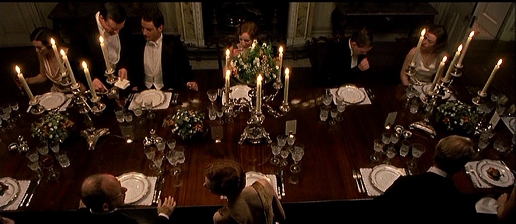 Gosford Park with all its beauty and splendor is the perfect location for a murder and equally perfect to highlight the stark contrasts between the upper and lower classes. During the film, viewers are treated to the views of the manor both inside and out. Inside we see the grandeur of the home’s dining room as the servants meticulously prepare the lavish table for dinner, the well-appointed bedrooms, the grand staircase, and hallways where intimate conversations take place, as well as the drawing room and the library.