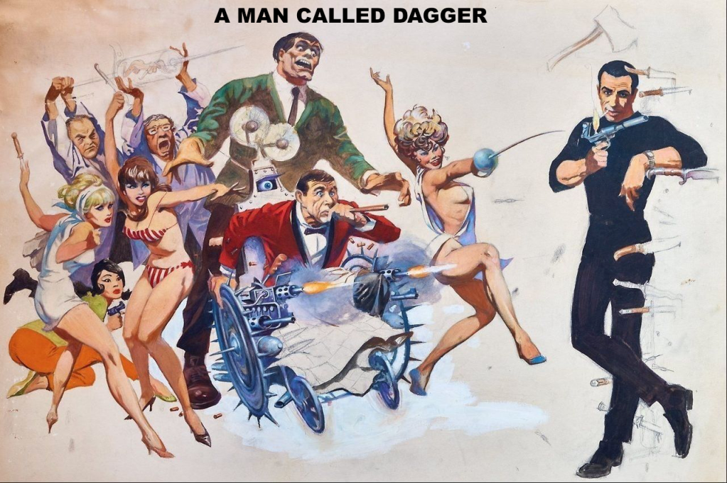 A mad scientist in a wheelchair wants to revive the Third Reich through mind control. American agent Richard Dagger is assigned to stop him. Along the way we are treated to girls, guns, and giants before a man called Dagger makes the world safe again.