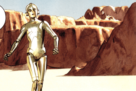 As a Star Wars fan before reading THE STAR WARS you have to reconcile yourself to the fact that this is not going to be the Star Wars you know and love. In fact, the name THE STAR WARS (George Lucas’ original title) lets you know just how far back this goes. On top of that you have to realize that there are going to be names, places, and things that are familiar sounding but very different. This can be jarring at times. For example, Han Solo’s name comes up several times before we actually see Han Solo. And when we do see him the fact that he is so different is striking and offsetting. You can’t let this throw you. If you can enter into reading this mini-series prepared you can love it almost as if it were some kind of alternate universe. It helps to pay attention to the tag line: “Longer ago in a galaxy even further away!”