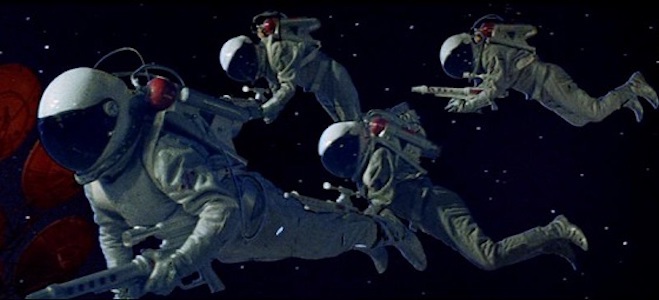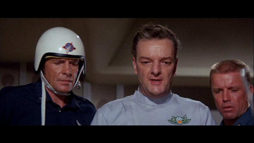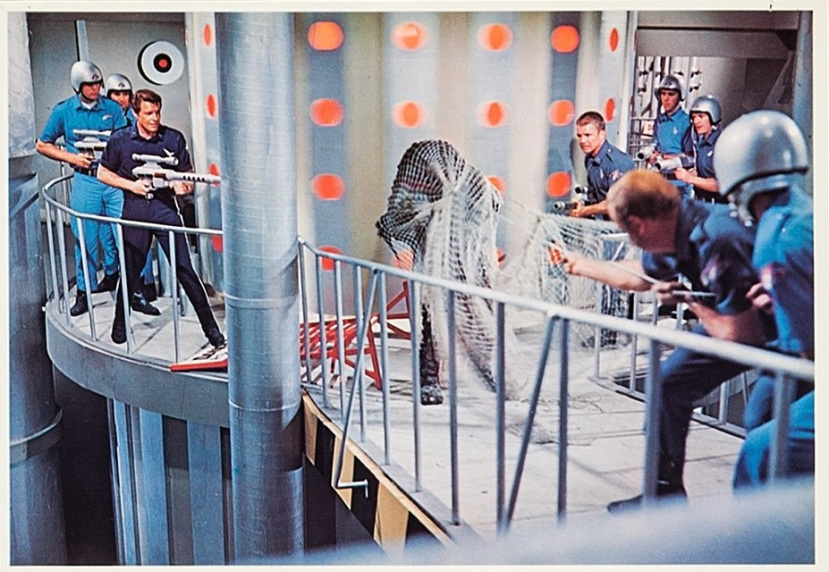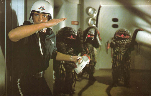 They set explosives on the surface of the asteroid to blow it up. While on the asteroid they discover green slime sucking energy from their vehicle. The science officer wants to bring back a sample but Rankin isn’t having it and smashes the container with some of the creature attaching to the science officer’s space suit.