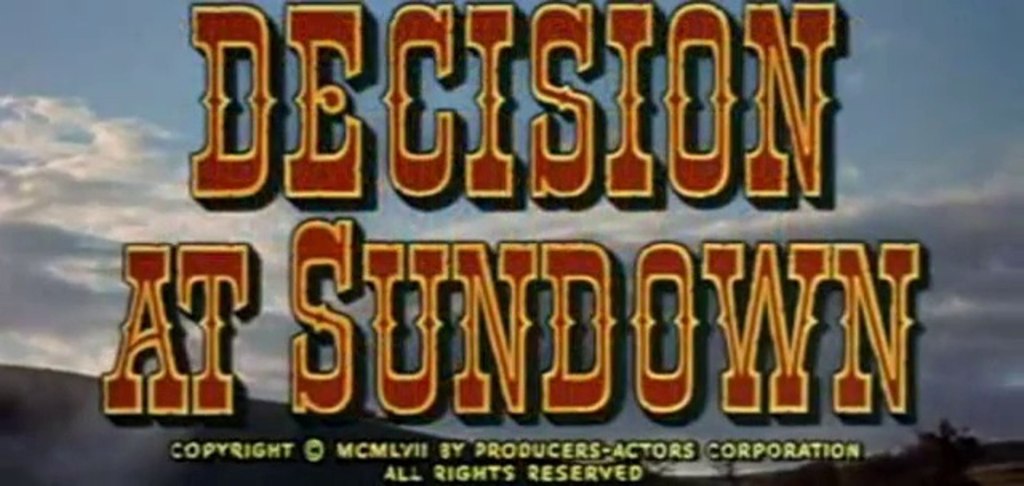 DECISION AT SUNDOWN (1957) is an American western film directed by Bud Boetticher and starring Randolph Scott. Noah Berry Jr., Karen Steele, and John Carroll.