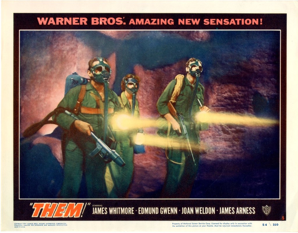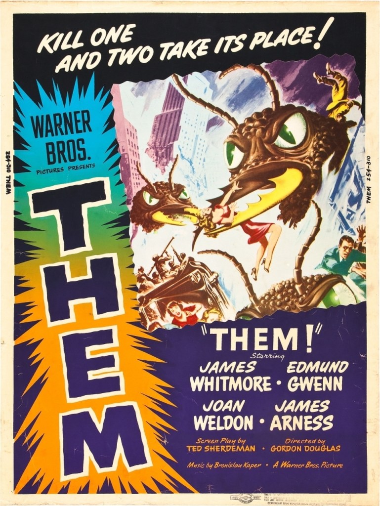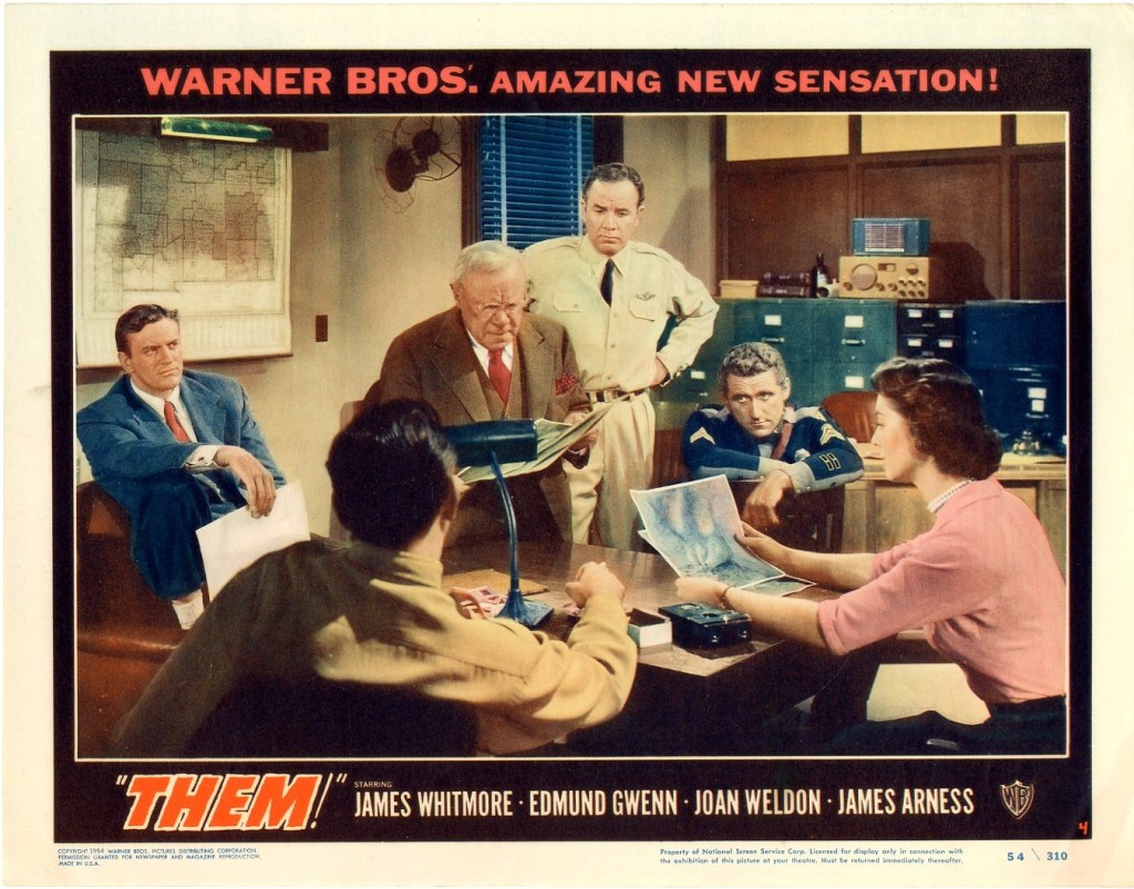 THEM! (1954) Is an American science fiction/monster movie produced by David Weisbart and directed by Gordon Douglas. It stars James Whitmore, James Arness, Edmund Gwenn, and Joan Weldon. The film is based on a story by George Worthing Yates, which was developed into a screenplay by Ted Sherdeman, and adapted by Russell Hughes.