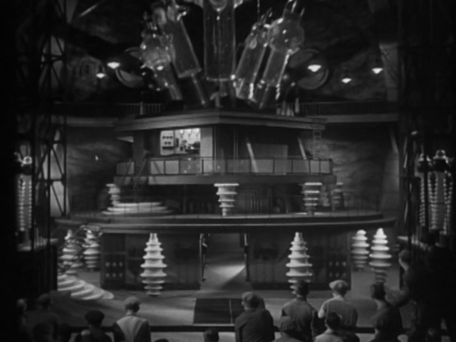 - This is a black and white film – as you would expect for the 1950s. The parts of the movie that take place in America look very much like American movies of that time. It has a kind of California-look. But then the action shifts to Canada and the look of the movie changes. I know that this is because the sets used for the Deltatron came from a German movie called GOLD (1934). But the average moviegoer would not know this. Instead, for them the look of this part of the film resembles British and European movies and television shows of this time. And then for the end when we got back to the United States it goes back to that California-look. I loved that!