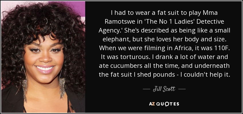 - Jill Scott was required to put on weight In order to match the description of Precious Ramotswe. In the process she noticed she had gained seven pounds in just one week. That is both disturbing and dangerous. The day before leaving for Botswana she discovered she was pregnant. She finished filming the season before returning to the United States and giving birth to her son.