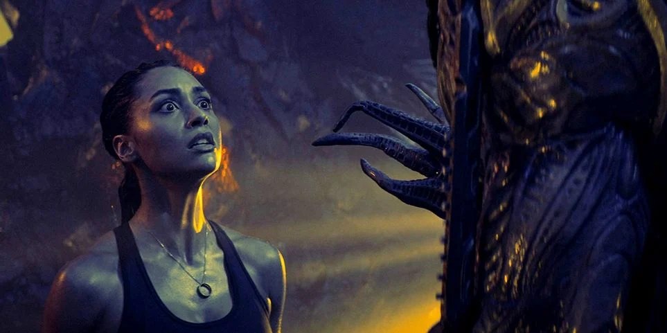 While on board the ship Corley discovers that the aliens are abducting humans for their brain power. He stumbles upon Elaine, now played by Samantha Jean, and a bio-mechanical alien that houses Jarrod’s brain and consciousness. Elaine was 3 months pregnant, but her pregnancy has been accelerated with alien DNA. While on the ship Elaine gives birth to a daughter but dies during the delivery. This leaves Corley and Jarrod to keep the baby safe, all while trying to rescue Trent and stop the alien attack on earth.