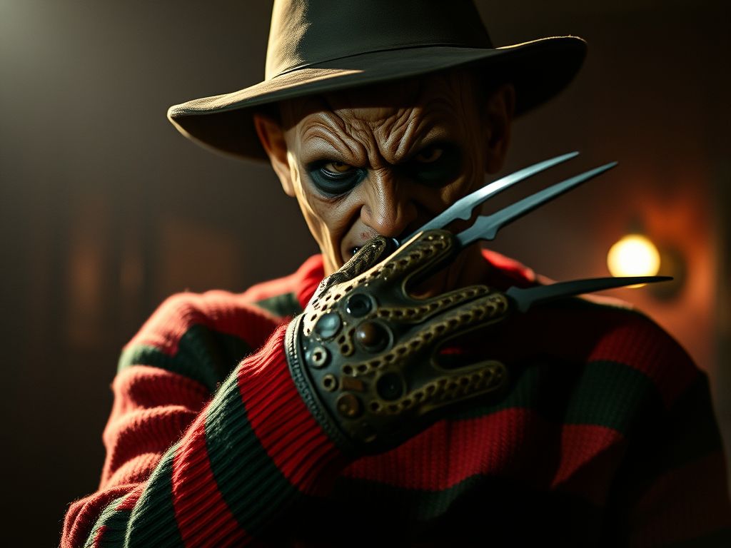 Freddy Krueger from the Nightmare on Elm Street franchise came onto the scene pretty early during the slasher craze and I was in on the ground floor. The knives for fingers is perfect for a slasher. Wolverine, he is not. — The Mustache